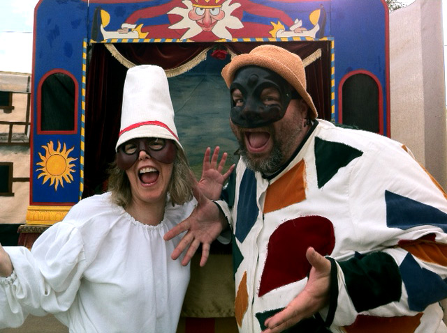 Here’s the two of us as the commedia characters, Pulcinella and Arlecchino. I’m the one on the left. I was Pulcinella in another show a few years back. He’s a really fun character to play. Very silly!